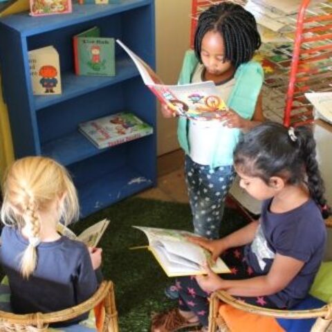 Listening skills form the basis of all formal learning as well as, very importantly, phonological awareness without which one cannot spell, read or write. We teach children to rhyme and create their own rhymes as well as listening for and identifying specific sounds in words. Once they are able to do this we then introduce them to the sounds of the alphabet. This gives them a rich phonological background on which they can base their formal reading and spelling skills. We nurture and facilitate reading but do not formally teach it. If a child asks for a word we will write it down. We also expose them to words on charts that they are encouraged to use. By writing captions of what they want to say about their artwork, we provide a link for them between their thoughts and the written word. Our environment is structured in a way that children are immersed in a rich environment of language and the necessary sub-skills for learning to read.